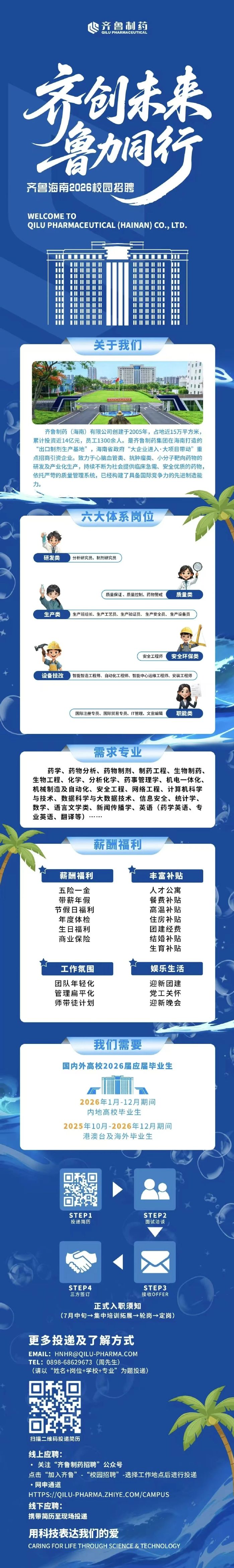 招聘信息丨齐鲁制药(海南)2026校园招聘