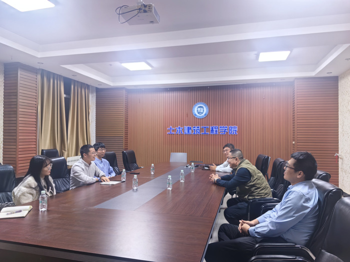 东北石油大学土木建筑工程学院副院长齐晗兵,系主任刘洋、吴岩松,教师刘昌宇,我院青年教师董悦、范欣欣、戚俊龙等共同参加了座谈。此次交流为双方提供了思想碰撞的平台,也为后续开展跨学科合作、培养复合型绿色人才奠定了坚实基础。